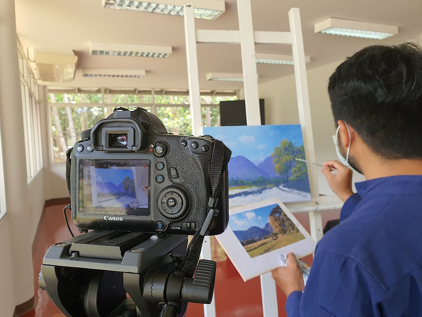โดยวีดิทัศน์ที่ส่วนประชาสัมพัน์จัดทำ แบ่งออกเป็น 3 กิจกรรม คือ การวาดเส้นพื้นฐาน (หุ่นรูปทรงเรขาคณิต ทรงกลม ทรงกระบอก ทรงสี่เหลี่ยม) ด้วยเทคนิคดินสอ EE โดย อาจารย์วาทิตย์ เสมบุตร, การวาดเส้นลายไทยพื้นฐาน (ลายกระจังตาอ้อย ลายประจำยาม ลายกระหนก 3 ตัว) ด้วยเทคนิคดินสอ 6B โดย อาจารย์ขจรเดช หนิ้วหยิ่น และ การวาดภาพทิวทัศน์ ด้วยเทคนิคสีอะคริลิค โดย อาจารย์อำนาจ ก้านขุนทด นอกจากนี้ยังมี การวาดภาพนิ่ง (ผลไม้ ดอกไม้) ด้วยเทคนิคสีน้ำ โดย อาจารย์อำนาจ ก้านขุนทด และ งานศิลปะปะติด (Collage) ด้วยกระดาษสีหรือวัสดุที่ไม่ใช้แล้ว โดย อาจารย์วัชระ กว้างไชย์