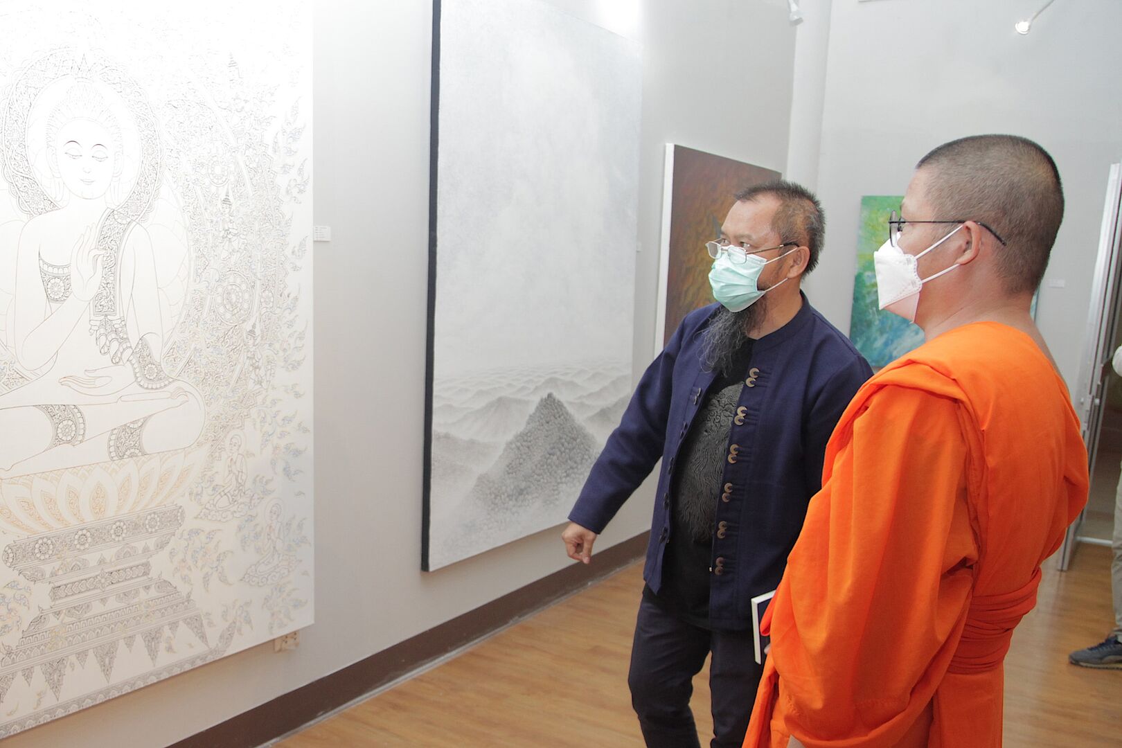 ท่าน ว. ให้ความเมตตาตรวจให้คะแนนผลงาน ผู้เรียนหลักสูตรพุทธศิลปกรรม มฟล. โดยใช้หลักธรรมเป็นโจทย์ตีความสู่งานศิลปะ