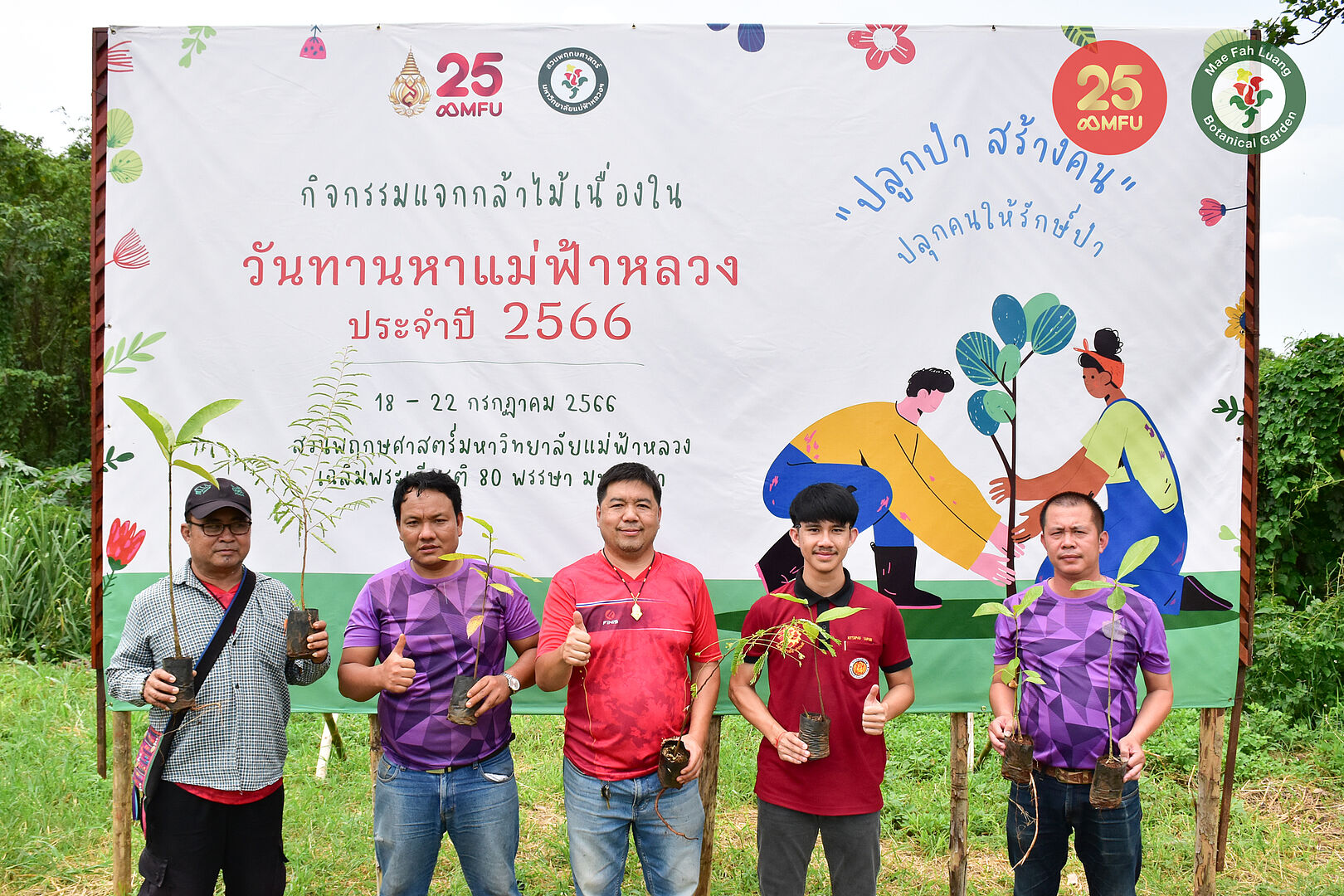 เนื่องในโอกาสการจัดพิธีทานหาแม่ฟ้าหลวง ประจำปี 2566 โครงการสวนพฤกษศาสตร์มหาวิทยาลัยแม่ฟ้าหลวง เฉลิมพระเกียรติ 80 พรรษา มหาราชา จัดกิจกรรมแจกกล้าไม้ ให้แก่หน่วยงานและประชาชนทั่วไป ระหว่างวันที่ 18-22 กรกฎาคม 2566 เพื่อร่วมสืบสานพระราชปณิธานของ สมเด็จพระศรีนครินทราบรมราชชนนี ในการ “ปลูกป่า..สร้างคน” ซึ่งมหาวิทยาลัยแม่ฟ้าหลวงได้นำมาเป็นปณิธานในการดำเนินงานของมหาวิทยาลัยตลอด 25 ปีที่ผ่านมา ทั้งนี้ ได้มีหน่วยงานภายนอก เจ้าหน้าที่มหาวิทยาลัยและนักศึกษา รวมถึงประชาชนผู้สนใจลงทะเบียนขอรับกล้าไม้เป็นจำนวนมาก โดยกำหนดให้หน่วยงานเดินทางเข้ามารับกล้าไม้ รวม 18 หน่วยงาน ระหว่างวันที่ 18-19 กรกฎาคม และบุคคลทั่วไป รวม 223 คน ระหว่างวันที่ 20-22 กรกฎาคม ซึ่งได้แจกต้นกล้าไปเป็นจำนวน 17,282 ต้น โดยเป็นกล้าไม้ 12 ชนิด ประกอบด้วย 1.ขี้เหล็ก 2.คอแลน 3.คำมอกหลวง 4.แคหัวหมู 5.แคหางค่าง 6.งิ้ว 7.ทองหลางป่า 8.ทองอุไร 9เพกา 10.มะขามป้อม 11.มะค่าโมง และ 12.ยางนา