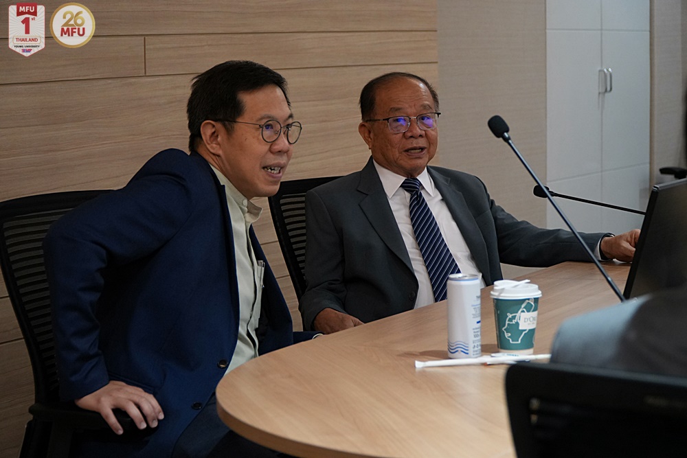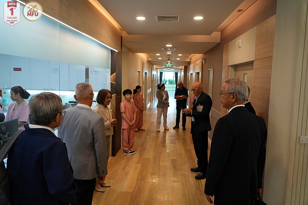 เมื่อวันที่ 25 เมษายน 2568 ศ.พิเศษ ดร.วันชัย ศิริชนะ นายกสภามหาวิทยาลัยแม่ฟ้าหลวง นำคณะผู้บริหารประกอบด้วย พลโท ศ.เกียรติคุณ นายแพทย์นพดล วรอุไร ที่ปรึกษาอธิการบดีด้านวิชาการ, รศ.ชุษณะ รุ่งปัจฉิม รองอธิการบดี, ศ.นพ.อภิรักษ์ ช่วงสุวนิช ผู้อำนวยการโรงพยาบาลศูนย์การแพทย์มหาวิทยาลัยแม่ฟ้าหลวง และ รศ.นพ.ปรีชา สุนทรานันท์ คณบดีสานักวิชาแพทยศาสตร์ เยี่ยมชมศูนย์การแพทย์ธรรมศาสตร์ พร้อมแลกเปลี่ยนหารือ ด้านการบริหารจัดการ และการดำเนินงานของศูนย์การแพทย์ธรรมศาสตร์ โดยมี ศ.ดร.ศุภสวัสดิ์ ชัชวาลย์ อธิการบดีมหาวิทยาลัยธรรมศาสตร์, รศ.นพ.พฤหัส ต่ออุดม รองอธิการบดีฝ่ายบริหารศูนย์สุขศาสตร์ มหาวิทยาลัยธรรมศาสตร์, ผศ.พญ.ธีรดา จันทร์ดี ผู้ช่วยรองผู้อำนวยการฝ่ายพัฒนากายภาพและสนับสนุนบริการ โรงพยาบาลธรรมศาสตร์เฉลิมพระเกียรติพร้อมด้วย รศ.นพ.จิตตินัดด์ หะวานนท์ ผู้อำนวยการศูนย์การแพทย์ธรรมศาสตร์ และคณะผู้บริหารศูนย์การแพทย์ธรรมศสตร์ ให้การต้อนรับ ณ ศูนย์การแพทย์ธรรมศาสตร์ โรงพยาบาลธรรมศาสตร์เฉลิมพระเกียรติ
