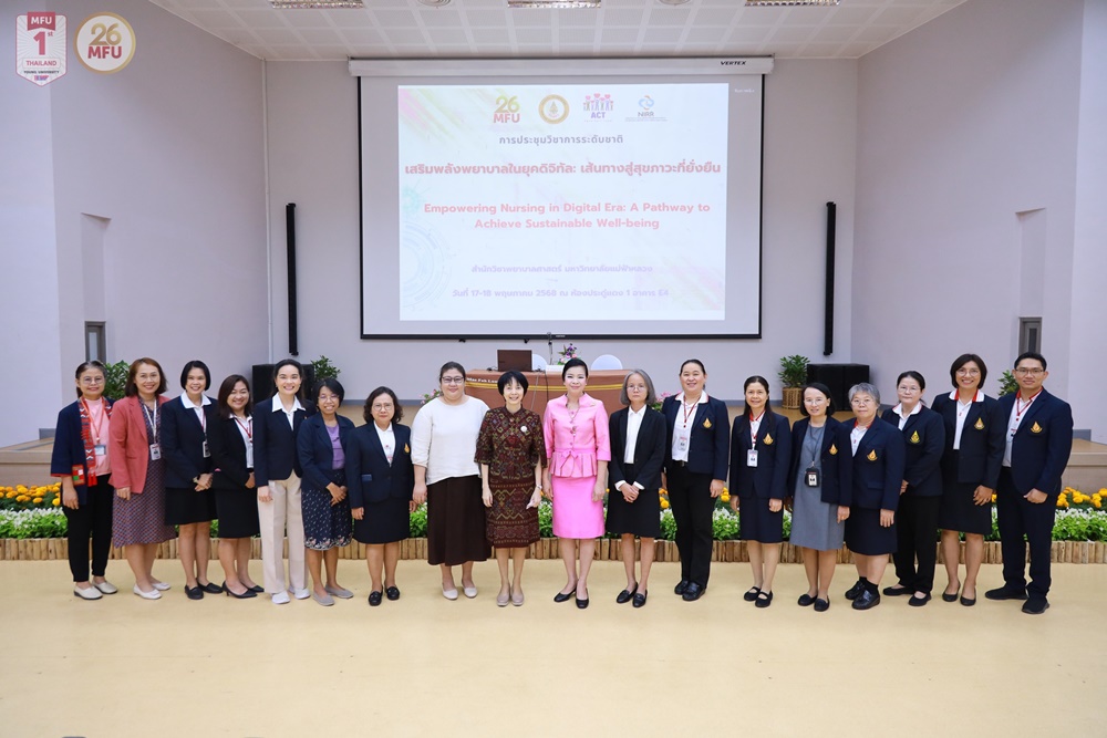ระหว่างวันที่ 17-18 พฤษภาคม 2568 สำนักวิชาพยาบาลศาสตร์ มหาวิทยาลัยแม่ฟ้าหลวง ได้จัดโครงการประชุมวิชาการระดับชาติ หัวข้อ “เสริมพลังพยาบาลในยุคดิจิทัล: เส้นทางสู่สุขภาวะที่ยั่งยืน (Empowering Nursing in Digital Era: A Pathway to Achieve Sustainable Well-being)” ณ ห้องประชุมประดู่แดง 1 และห้อง E4A-516, E4A-517, E4A-518 อาคารพลเอกสำเภา ชูศรี โดยมีวัตถุประสงค์เพื่อเปิดเวทีแลกเปลี่ยนความรู้ เสริมสร้างทักษะการใช้เทคโนโลยีดิจิทัลและปัญญาประดิษฐ์ (AI) เพื่อการพยาบาลที่มีประสิทธิภาพและยั่งยืนสำหรับประชากรทุกช่วงวัย