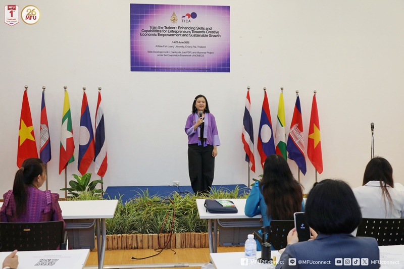 วันนี้ (21 มิถุนายน 2568) สำนักวิชานวัตกรรมสังคม มหาวิทยาลัยแม่ฟ้าหลวง จัดพิธีปิดและมอบประกาศนียบัตรการอบรม "Train the Trainer" ให้แก่ผู้ประกอบการหญิงจากกัมพูชา สปป.ลาว และเมียนมา ก่อนนำเข้าร่วมกิจกรรม Workshop สำรวจเศรษฐกิจสร้างสรรค์ในเชียงราย