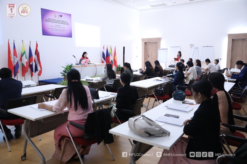 สำนักวิชานวัตกรรมสังคม มหาวิทยาลัยแม่ฟ้าหลวง จัดการอบรมหลักสูตร "Train the Trainer" เพื่อเสริมสร้างศักยภาพผู้ประกอบการหญิงจากกัมพูชา สปป.ลาว และเมียนมา ภายใต้กรอบความร่วมมือ ACMECS ระหว่างวันที่ 14-22 มิถุนายน 2568 ที่ห้องประชุมพวงชมพู-พู่ระหง อาคาร E-Park ชั้น 5 มหาวิทยาลัยแม่ฟ้าหลวง โดยมี ดร.ธนิกุล จันทรา คณบดีสำนักวิชานวัตกรรมสังคม กล่าวต้อนรับและเปิดงาน ดร.จารุวรรณ หัตถผสุ หัวหน้าโครงการ กล่าวรายงาน