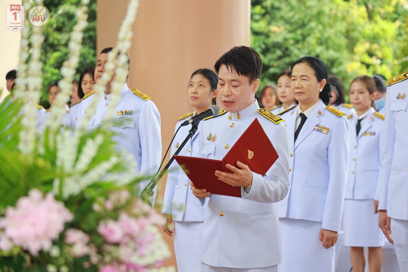 ผศ.ดร.ภาณุพงษ์ ใจวุฒิ รองอธิการบดีมหาวิทยาลัยแม่ฟ้าหลวง เป็นประธานในพิธี พร้อมด้วยผู้บริหาร พนักงาน และนักศึกษา ได้ร่วมกันแสดงความจงรักภักดีและถวายพระพรชัยมงคลแด่พระองค์ท่าน พิธีดำเนินไปตามลำดับ รองอธิการบดีประธานในพิธีเปิดกรวยกระทงดอกไม้ธูปเทียนแพหน้าพระฉายาลักษณ์สมเด็จพระนางเจ้าฯ พระบรมราชินี ตามด้วยพิธีกล่าวคำถวายพระพรชัยมงคล และการขับร้องเพลงสรรเสริญพระบารมี