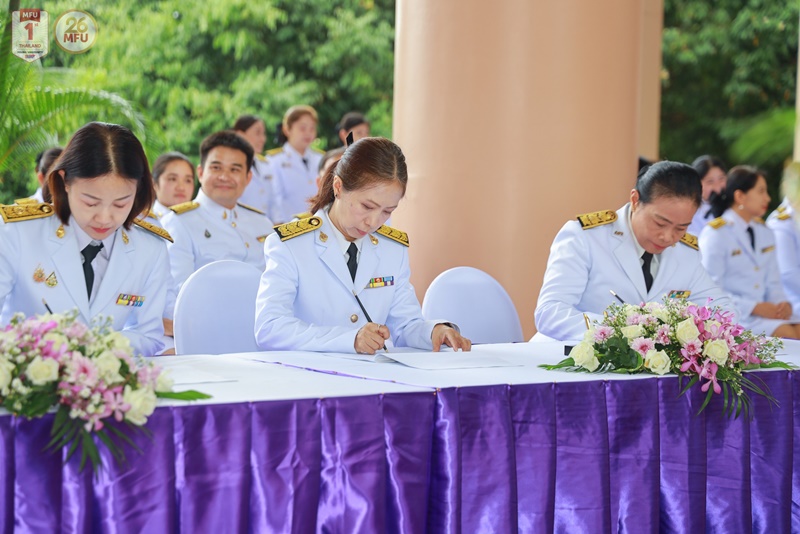 มหาวิทยาลัยแม่ฟ้าหลวงได้จัดพิธีลงนามถวายพระพรชัยมงคล เนื่องในวันเฉลิมพระชนมพรรษา สมเด็จพระนางเจ้าสุทิดา พัชรสุธาพิมลลักษณ พระบรมราชินี วันที่ 3 มิถุนายน 2568 เมื่อวันศุกร์ที่ 30 พฤษภาคม 2568 เวลา 09.00 น. ณ โถงอเนกประสงค์ อาคารเรียนรวม 1 มหาวิทยาลัยแม่ฟ้าหลวง