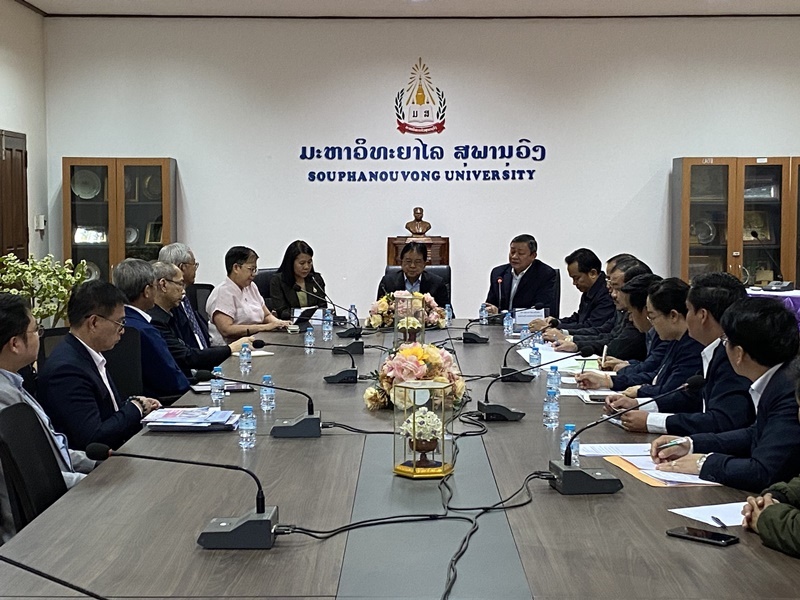 ในโอกาสนี้ คณะผู้บริหารได้เข้าเยี่ยมคารวะ นางมรกต ศรีสวัสดิ์ เอกอัครราชทูตไทยประจำสาธารณรัฐประชาธิปไตยประชาชนลาว เพื่อรับทราบนโยบายและแนวทางความร่วมมือที่เป็นประโยชน์ โดยเอกอัครราชทูตได้เน้นย้ำถึงความสำคัญของความร่วมมือระหว่างมหาวิทยาลัยของทั้งสองประเทศ และความสัมพันธ์ระหว่างประชาชนต่อประชาชน โดยเฉพาะในโอกาสครบรอบ 75 ปีการสถาปนาความสัมพันธ์ทางการทูตไทย-ลาว