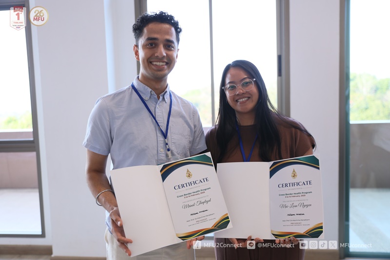 มหาวิทยาลัยแม่ฟ้าหลวงจัดพิธีปิดอย่างเป็นทางการของโครงการ Cross Border Health Program 1/2025 ซึ่งเป็นโครงการแลกเปลี่ยนเรียนรู้ระหว่างมหาวิทยาลัยแม่ฟ้าหลวงและ Oregon Health and Science University (OHSU) ที่ดำเนินการมาตลอด 10 วัน เมื่อวันที่ 14 กุมภาพันธ์ 2568 เวลา 16.30-17.00 น. ณ ห้องพวงชมพู ชั้น 5 อาคาร M Square โดยมี ผศ.ดร.มัชฌิมา นราดิศร อธิการบดี มอบประกาศนียบัตรแก่ผู้เข้าร่วมโครงการ พร้อมกล่าวแสดงความยินดีและปิดโครงการ โดยเน้นย้ำถึงความสำคัญของความร่วมมือระดับนานาชาติในการพัฒนาระบบการดูแลสุขภาพ และการแลกเปลี่ยนความรู้ข้ามวัฒนธรรมระหว่างสองสถาบัน
