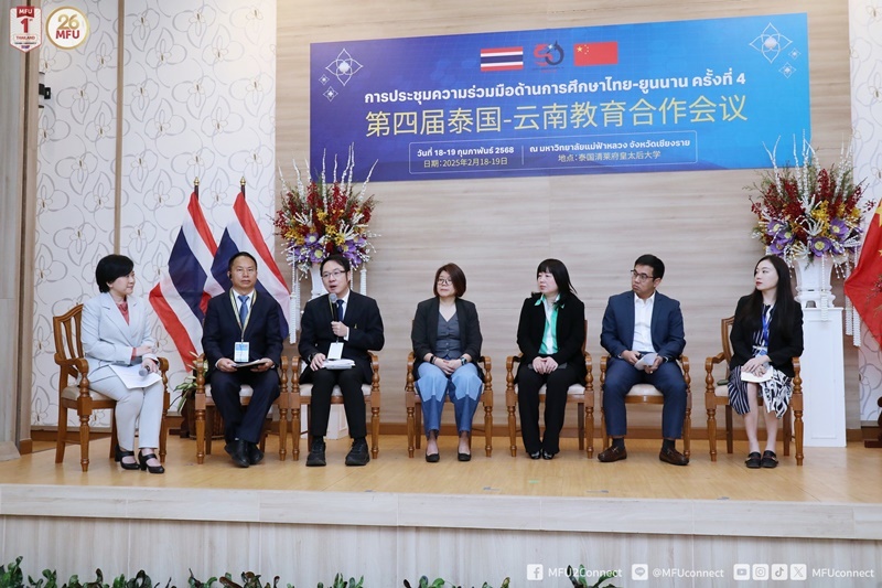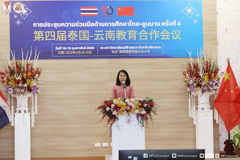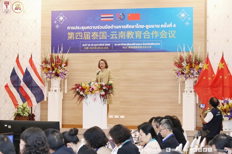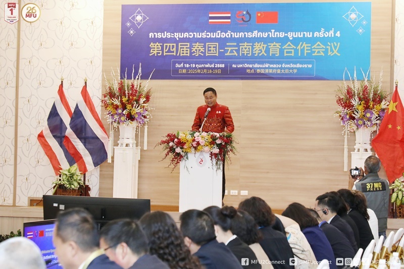 เมื่อวันที่ 18 กุมภาพันธ์ 2568 ที่ห้องประชุมคำมอกหลวง มหาวิทยาลัยแม่ฟ้าหลวง จังหวัดเชียงราย ร่วมกับสำนักงานปลัดกระทรวงการอุดมศึกษา วิทยาศาสตร์ วิจัยและนวัตกรรม และสำนักงานที่ปรึกษาด้านการอุดมศึกษา วิทยาศาสตร์ วิจัยและนวัตกรรม ประจำสถานเอกอัครราชทูต ณ กรุงปักกิ่ง สถานกงสุลใหญ่ ณ นครคุนหมิง เป็นเจ้าภาพจัดการประชุมความร่วมมือด้านการศึกษาไทย-ยูนนาน ครั้งที่ 4 ภายใต้หัวข้อ "The Way Forward: Shaping the Future Thai-Yunnan Education" ระหว่างวันที่ 18-19 กุมภาพันธ์ 2568 มีผู้เข้าร่วมกว่า 150 คน ประกอบด้วยผู้บริหารและคณาจารย์จากมหาวิทยาลัยชั้นนำของไทยและมณฑลยูนนาน ผู้แทนจากกระทรวงการอุดมศึกษาฯ กรมการศึกษามณฑลยูนนาน และสื่อมวลชน