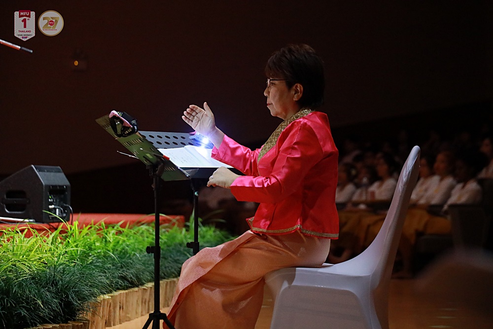 หลังการแสดงซึ่งจบลงเวลา 20.00 น. มีพิธีมอบช่อดอกไม้แทนคำขอบคุณแก่นักแสดงผู้แทนจำนวน 6 ท่าน ได้แก่ 1. อาจารย์ NAOTO AIZAWA (นาโอโตะ ไอซาวะ) (วาทยากร) 2. อาจารย์ KENSAKU TANIKAWA (เคนซากุ ทานิคาวะ) (ผู้ประพันธ์เพลง) 3. อาจารย์ MAKI TAKIMOTO (มากิ ทาคิโมโตะ) (ผู้เขียนบท) 4. อาจารย์อานันท์ นาคคง (ศิลปินศิลปาธร ประจำปีพุทธศักราช 2562 (สาขาดนตรี) ผู้เชี่ยวชาญด้านดนตรีไทยและวัฒนธรรมอาเซียน) 5. กลุ่มประสานเสียงเยาวชนปกาเกอะญอ และ 6.วงดนตรีมหาวิทยาลัยแม่ฟ้าหลวง (MFU Band) ตามด้วยการถ่ายภาพร่วมกันระหว่างคณะผู้จัดและศิลปิน บรรยากาศเต็มไปด้วยรอยยิ้ม ความซาบซึ้ง และคำสัญญาว่าจะกลับมาพบกันอีกในอนาคต