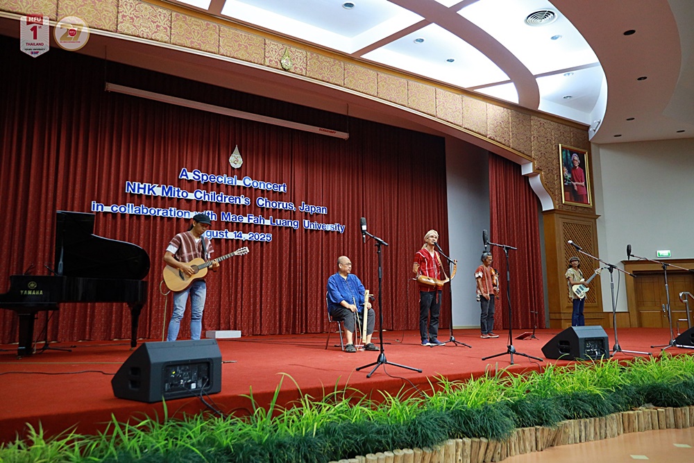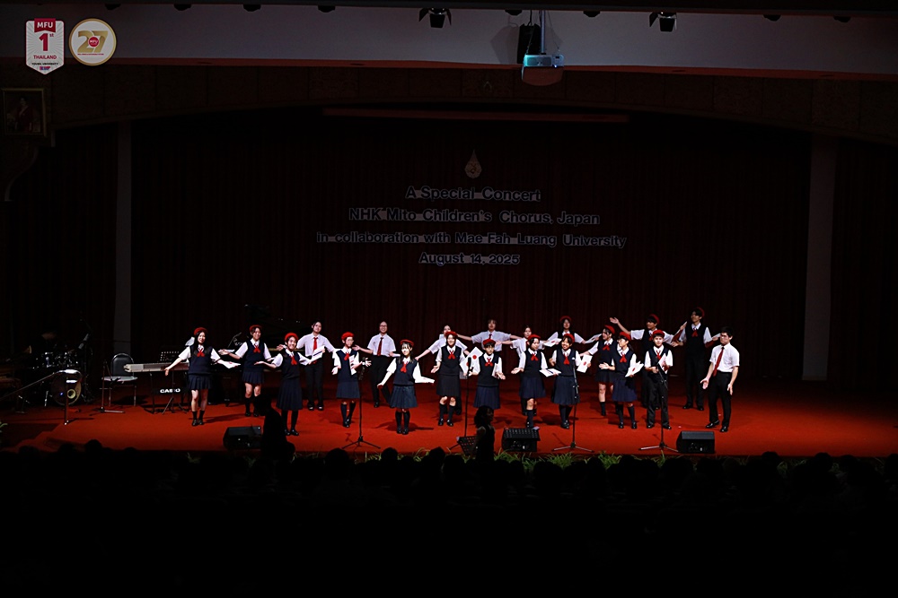 เมื่อวันที่ 14 สิงหาคม 2568 มหาวิทยาลัยแม่ฟ้าหลวง ร่วมกับ คณะนักร้องประสานเสียงเยาวชน NHK เมืองมิโตะ จัดคอนเสิร์ตพิเศษ “สูู่เมืองเชียงราย ผ่านละครประสานเสียงและบทเพลงญี่ปุ่นบนเวทีประเทศไทย” เนื่องในโอกาสครบรอบ 20 ปี คณะนักร้องประสานเสียงเยาวชน NHK เมืองมิโตะในโครงการแลกเปลี่ยนวัฒนธรรมนานาชาติ ครั้งที่ 1 ณ หอประชุมสมเด็จย่า อาคาร C4
