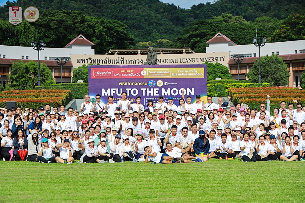 เมื่อวันศุกร์ที่ 15 สิงหาคม 2568 มหาวิทยาลัยแม่ฟ้าหลวง จัดพิธีเปิดโครงการกิจกรรม “MFU to the Moon” พร้อมกิจกรรมเดิน–วิ่งร่วมกับอธิการบดี ณ ลานพระราชานุสาวรีย์สมเด็จพระศรีนครินทราบรมราชชนนี (ลานสมเด็จย่า) โดยมี ผู้ช่วยศาสตราจารย์ ดร.มัชฌิมา นราดิศร อธิการบดี เป็นประธานในพิธี และ ผู้ช่วยศาสตราจารย์ ดร.ภาณุพงษ์ ใจวุฒิ รองอธิการบดี ประธานคณะกรรมการอำนวยการจัดกิจกรรมพนักงานสัมพันธ์และงานวันครอบครัว มหาวิทยาลัยแม่ฟ้าหลวง กล่าวรายงานวัตถุประสงค์การจัดงาน