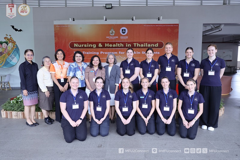สำนักวิชาพยาบาลศาสตร์ - ศูนย์บริการวิชาการ มหาวิทยาลัยแม่ฟ้าหลวง เปิดกิจกรรมแลกเปลี่ยนองค์ความรู้นานาชาติด้านวิชาชีพการพยาบาลและการสาธารณสุข เพื่อการดูแลสุขภาพอย่างยั่งยืน ต้อนรับนักศึกษาและคณาจารย์จากมหาวิทยาลัย Deakin ประเทศออสเตรเลีย ในโครงการ "Nursing and Health in Thailand Training for Deakin Students 2025" ระหว่างวันที่ 30 มิถุนายน - 5 กรกฎาคม 2568 ณ มหาวิทยาลัยแม่ฟ้าหลวง จังหวัดเชียงราย