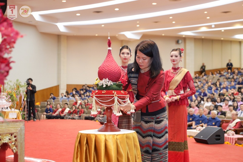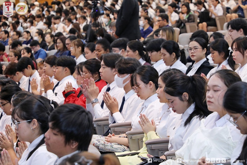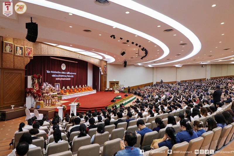 มหาวิทยาลัยแม่ฟ้าหลวง (มฟล.) จัดพิธีฉลองครบรอบ 27 ปีแห่งการสถาปนา เมื่อวันที่ 25 กันยายน 2568 ณ มหาวิทยาลัยแม่ฟ้าหลวง จังหวัดเชียงราย กิจกรรมสำคัญเริ่มตั้งแต่เวลา 06.30 น. ด้วยการถวายภัตตาหารเช้าแด่พระสงฆ์ ณ อาคารปฏิบัติการทางวิทยาศาสตร์และเทคโนโลยี (S2) ตามด้วยพิธีทำบุญตักบาตรพระสงฆ์ 160 รูป ณ ลานดาว เวลา 07.00 น. โดยมีศาสตราจารย์พิเศษ ดร.วันชัย ศิริชนะ นายกสภามหาวิทยาลัยแม่ฟ้าหลวง กรรมการสภามหาวิทยาลัย ผู้ช่วยศาสตราจารย์ ดร.มัชฌิมา นราดิศร อธิการบดี ผู้บริหาร พนักงาน และนักศึกษาร่วมกันทำบุญ