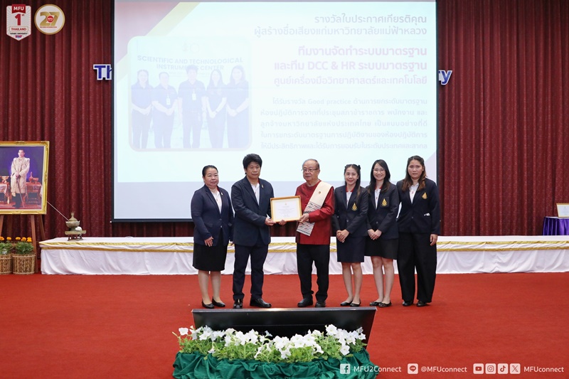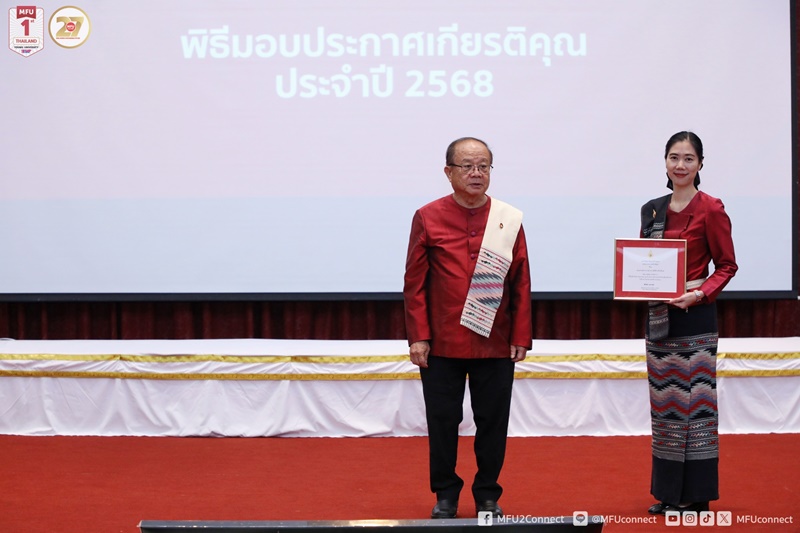 มหาวิทยาลัยแม่ฟ้าหลวง (มฟล.) จัดพิธีมอบโล่และประกาศเกียรติคุณ เนื่องในโอกาสครบรอบ 27 ปีแห่งการสถาปนามหาวิทยาลัย โดยมีศาสตราจารย์พิเศษ ดร.วันชัย ศิริชนะ นายกสภามหาวิทยาลัยแม่ฟ้าหลวง เป็นประธานในพิธี เมื่อวันที่ 25 กันยายน 2568 ที่หอประชุมสมเด็จย่า