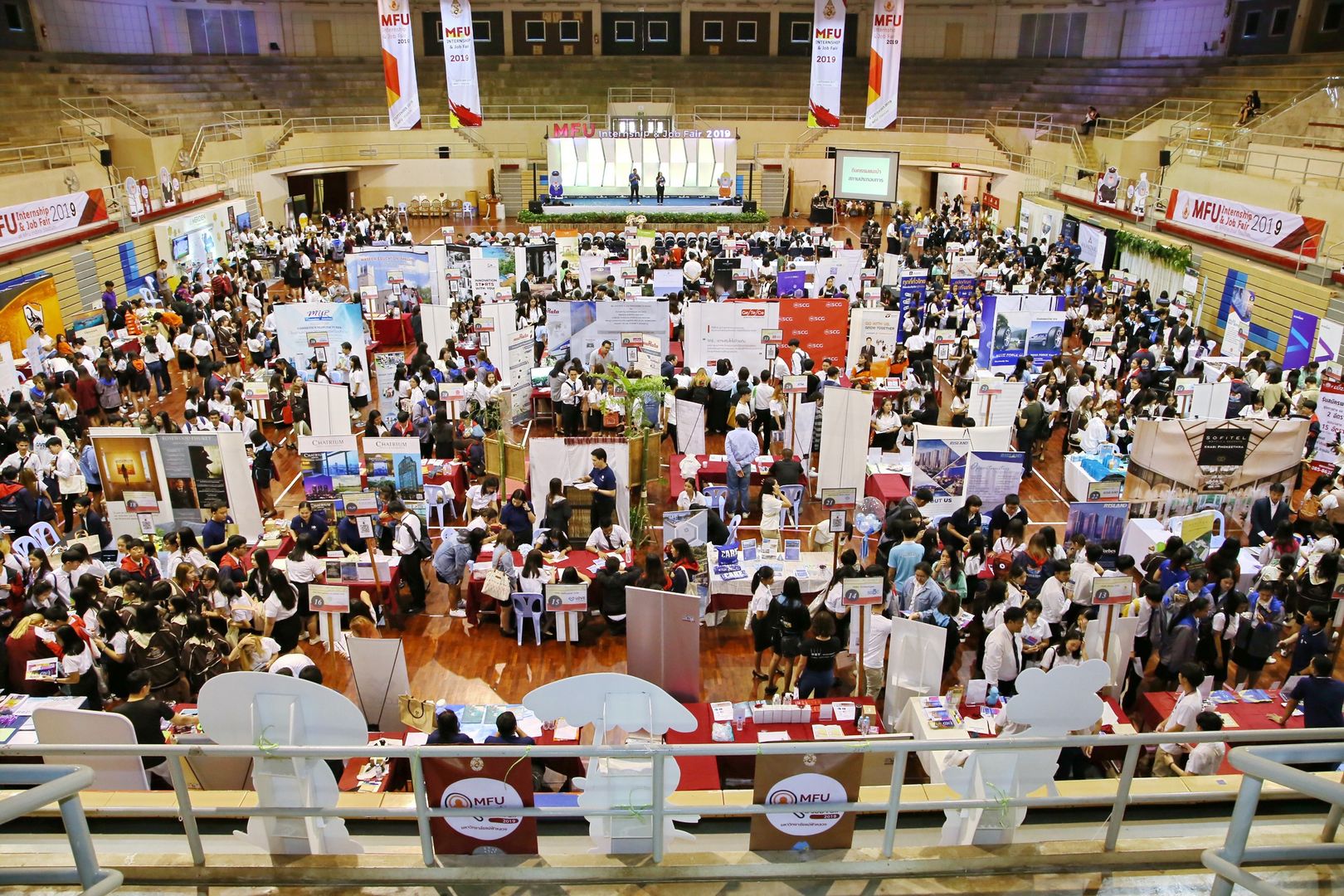 มหาวิทยาลัยแม่ฟ้าหลวง (มฟล.) โดย สำนักงานจัดหางานและฝึกงานของนักศึกษา จัดกิจกรรม MFU Internship & Job Fair 2019 เมื่อวันเสาร์ที่ 7 กันยายน 2562 ณ อาคารเฉลิมพระเกียรติฯ โดยมี รศ.ดร.ชยาพร วัฒนศิริ อธิการบดี เป็นประธานในพิธีเปิดกิจกรรม พร้อมด้วยรองอธิการบดี ดร.พนม วิญญายอง ดร.พรรณรวี พรหมนารท และผู้ช่วยอธิการบดี ผศ.ดร.สุวรรณา เดชาทัย ดร.พฤทธิ์ พุฒจร ให้เกียรติร่วมงาน กิจกรรมในปีนี้มีผู้ประกอบการให้ความสนใจเข้าร่วมกว่า 65 หน่วยงานจากทั่วประเทศ ซึ่งนักศึกษาที่กำลังเตรียมตัวฝึกงานหรือจะสำเร็จการศึกษา สามารถสมัครเข้ารับการฝึกปฏิบัติงานและสมัครงาน พร้อมรับการสัมภาษณ์ได้กับผู้ประกอบการโดยตรงภายในงานนี้